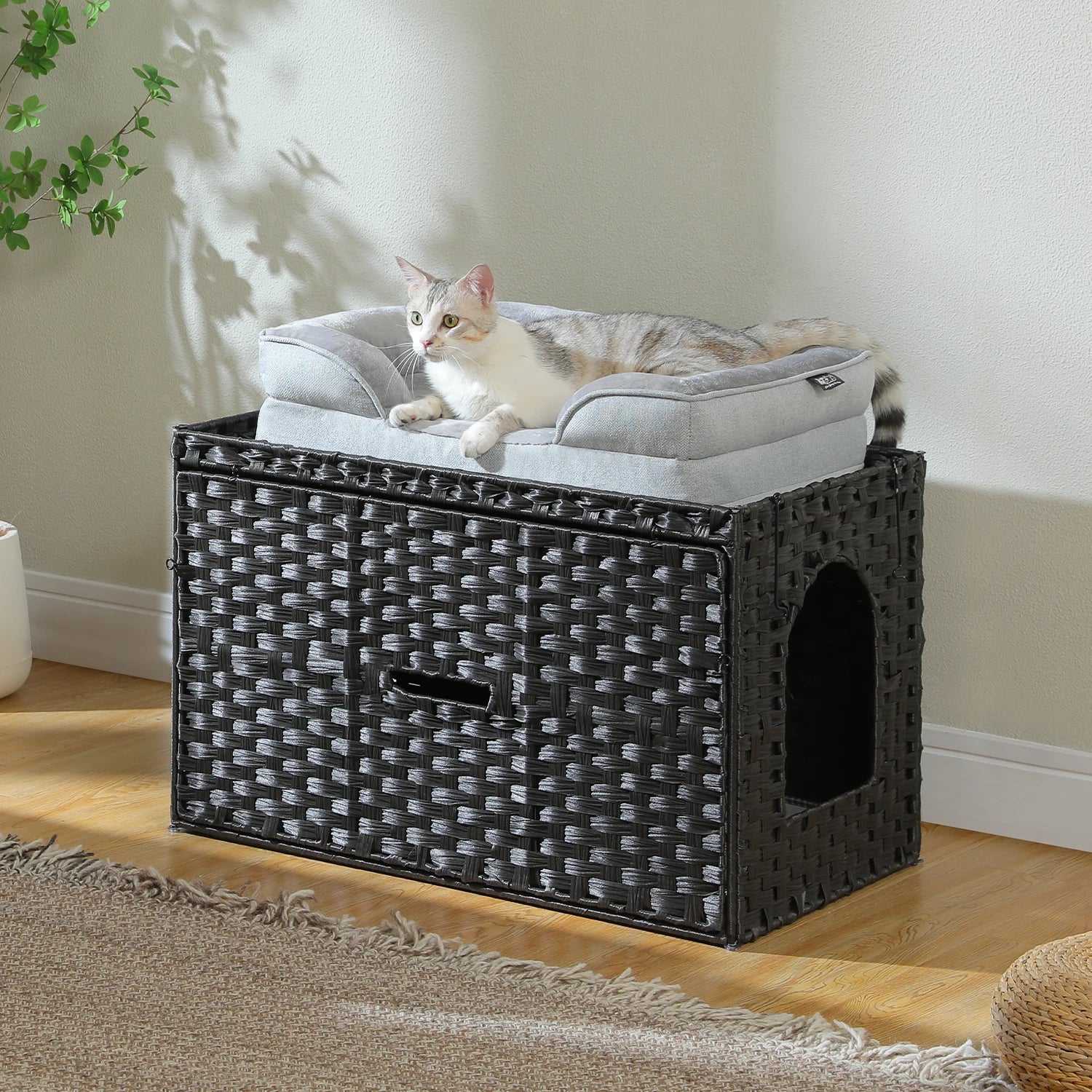 Choose the Rattan Hidden Litter Box House because it combines style, functionality, and comfort in one elegant piece of furniture. Its handwoven rattan design hides the litter box from view while providing your cat with a private, cozy space to do their business. The durable construction ensures stability and long-lasting use, while the spacious interior accommodates larger cats comfortably. Easy to clean and maintain, this litter box house keeps your home tidy and aesthetically pleasing without compromising your cat’s comfort or privacy.